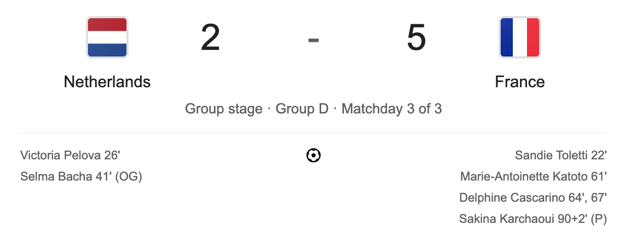 France sealed top spot in Group D with a dazzling 5-2 victory over the Netherlands in Zurich on Saturday night. While a draw would have been enough for Les Bleues, they produced a ruthless attacking display to bury any doubts and underline their championship credentials.