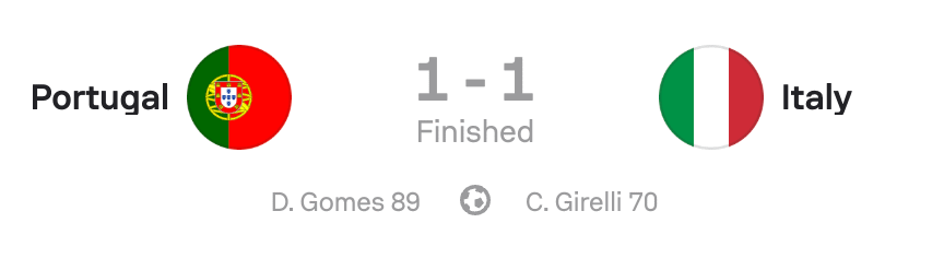 The draw leaves Italy with four points, within sight of qualification, while Portugal sit on one point and are still (officially) in the running to progress.