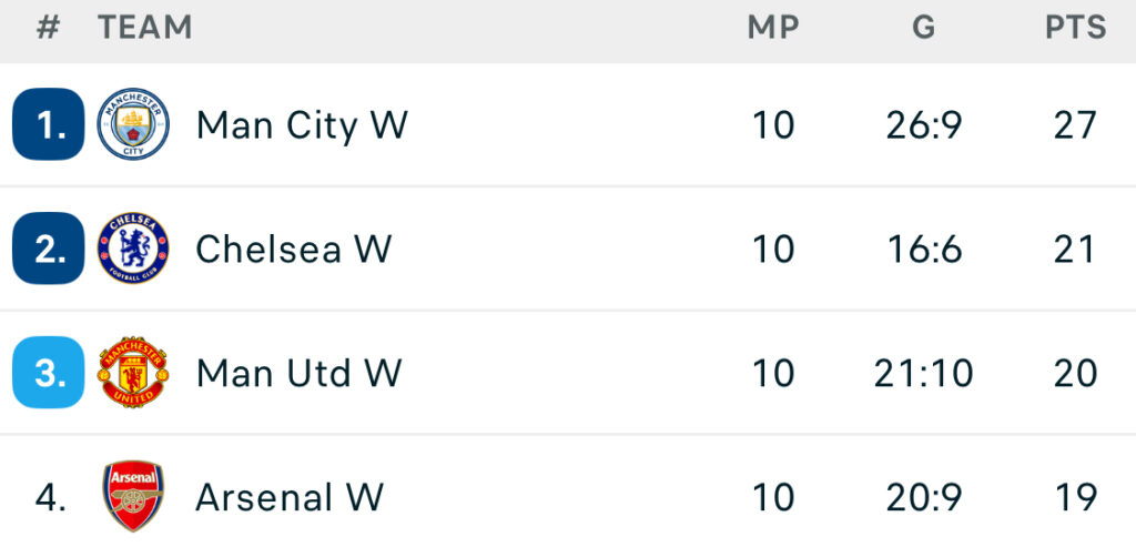 Honestly? Not a lot. But it does signal that the current champions are beatable – and having a genuine title race certainly makes things more interesting. Chelsea will no doubt still be there or thereabouts come the end of the season, and with City still to play, the WSL has something it hasn’t felt in a while: jeopardy, unpredictability, and a race that suddenly looks very alive.