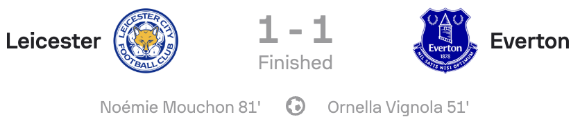 Leicester responded well, growing into the game as the second half progressed. Their pressure was eventually rewarded in the 81st minute when substitute Noémie Mouchon levelled the score with a near-post effort that slipped under Emily Ramsey – a moment the Everton keeper will want to forget.