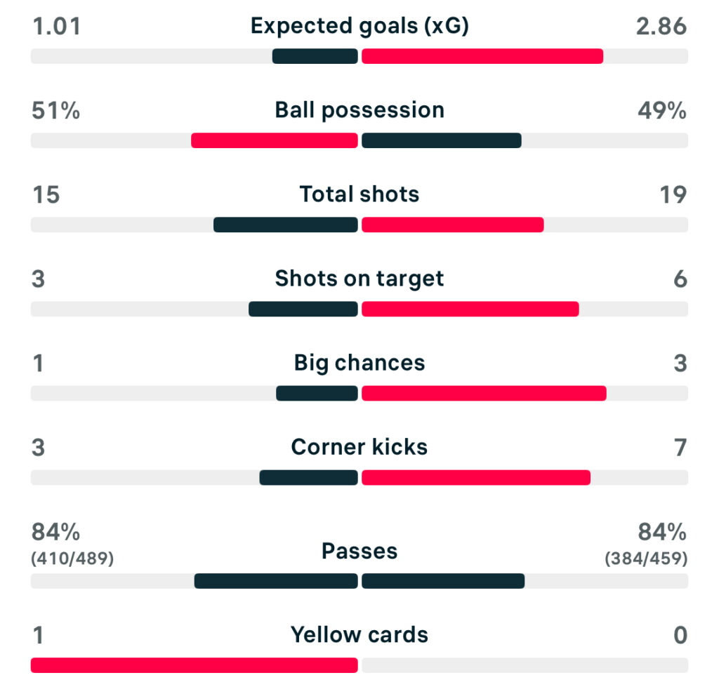 The first half was a cautious affair, largely devoid of clear-cut chances as both sides struggled to find rhythm in the final third. Liverpool saw more of the ball early on, but lacked the attacking edge needed to make it count.