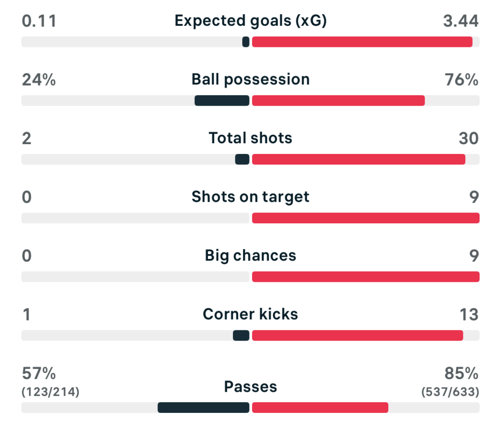 Arsenal controlled proceedings thereafter, dominating possession and chances but struggling to break down Liverpool’s organised defence. The breakthrough finally came in the 87th minute when Emily Fox’s long pass found Blackstenius, who took a touch and rifled home from the edge of the area to secure all three points.