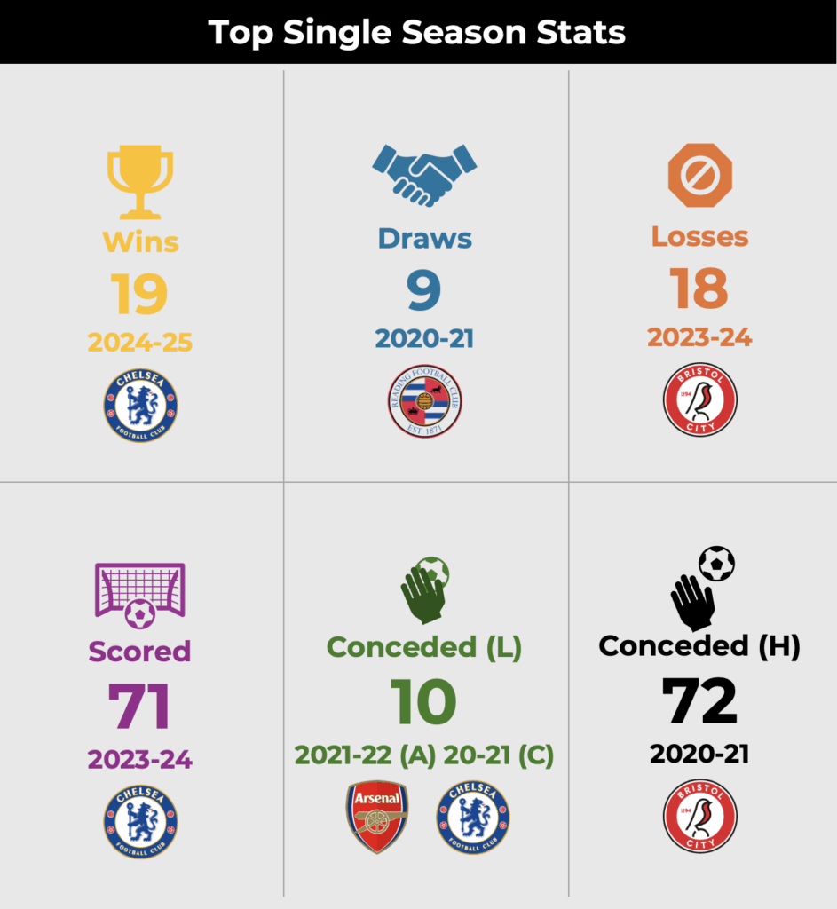 Chelsea’s unbeaten 2024–25 was just the second in WSL history (after their 2017–18 campaign). At the other extreme, Bristol’s defensive record is a warning to every newcomer.