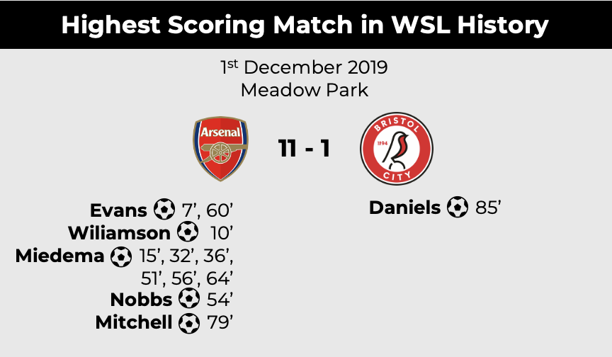 The WSL has produced some spectacular mismatches, none bigger than Arsenal’s 11–1 demolition of Bristol City in 2019 – still the highest-scoring game in league history.